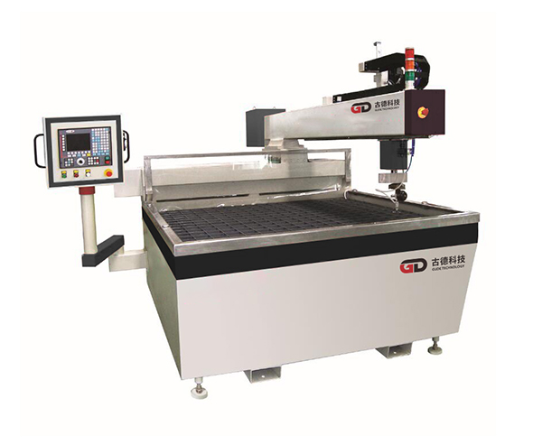 四軸水切割機(jī)是古德率先開發(fā)的新一代用于陶瓷石材拼花等領(lǐng)域的新型切割機(jī)。X4-Ⅲ四軸水切割機(jī)采用“可調(diào)式斜邊切割控制機(jī)構(gòu)”等發(fā)明專利技術(shù)(專利號(hào):ZL 201110245675.9),在普通水切割機(jī)的基礎(chǔ)上增加了斜邊控制機(jī)構(gòu)和四軸控制系統(tǒng),通過(guò)調(diào)整偏擺軸的偏擺角度,并配合回轉(zhuǎn)軸的轉(zhuǎn)動(dòng)來(lái)控制切割頭的姿態(tài),使得石材陶瓷切割獲得反方向的切口斜邊,拼接時(shí)省去了人工打磨這一勞動(dòng)強(qiáng)度最大、花費(fèi)時(shí)間最長(zhǎng)、粉塵和噪音污染最為嚴(yán)重的環(huán)節(jié)。四軸水刀不僅大大提升了石材陶瓷拼圖的品質(zhì),而且極古德提高了生產(chǎn)效率,降低了生產(chǎn)成本,是石材陶瓷拼花行業(yè)的一項(xiàng)革命。